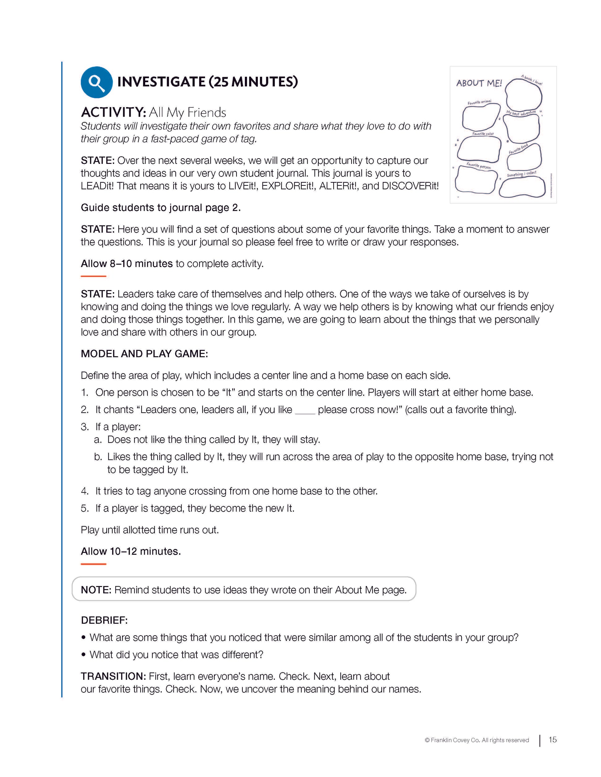 Energize your summer school program with the 7 Habits Imagination Series! This Level 3 Educator Guide delivers a discovery-based curriculum that teaches the 7 Habits® through creativity, movement, and critical thinking. With a flexible, easy-to-follow structure, this guide helps educators facilitate high-impact leadership lessons that are both fun and meaningful.
