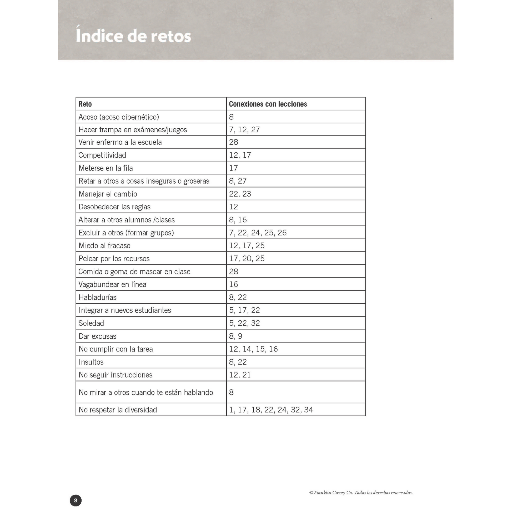 - sugerencias de lecciones para desafíos clave en el aula