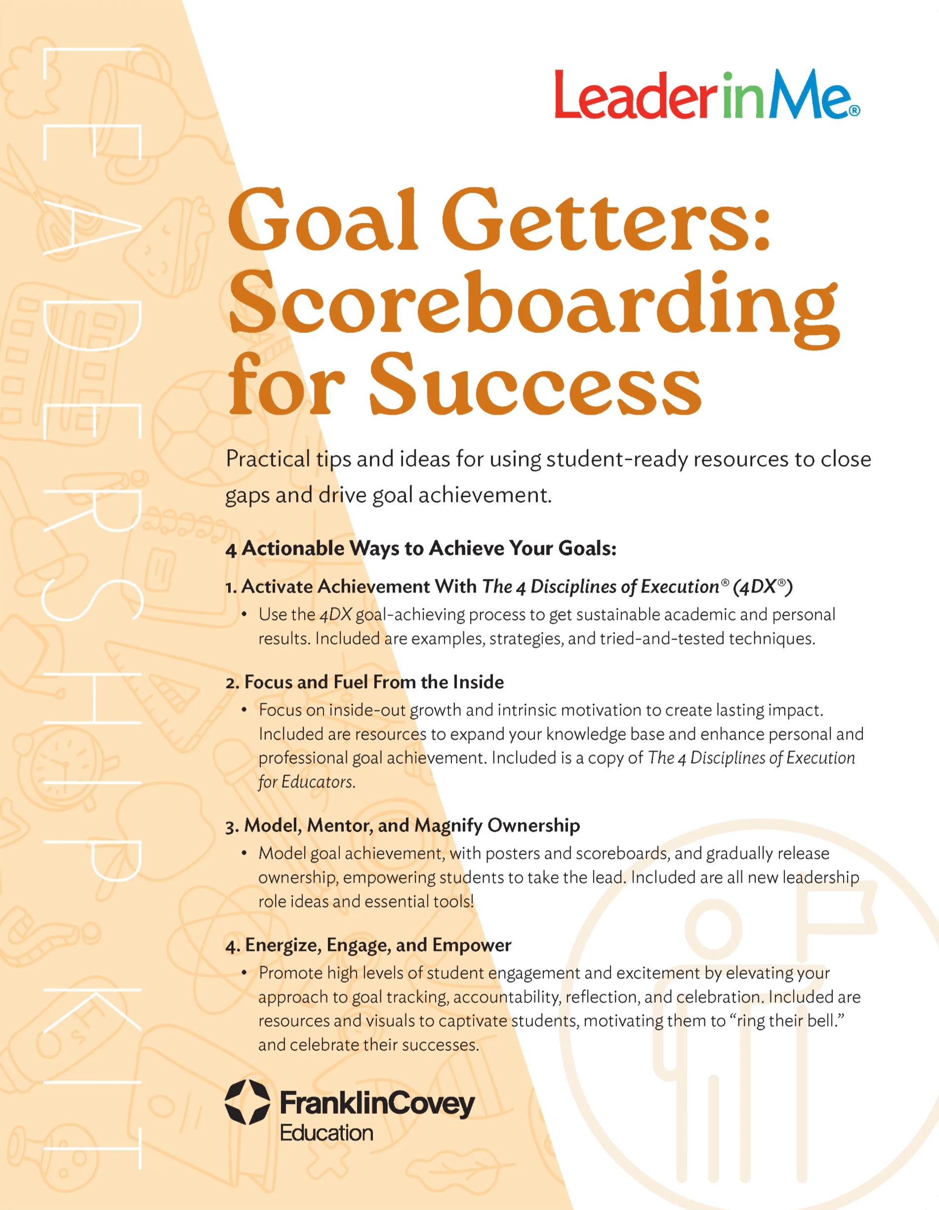 ✓ Supports implementation of Leader in Me’s goal-achievement process